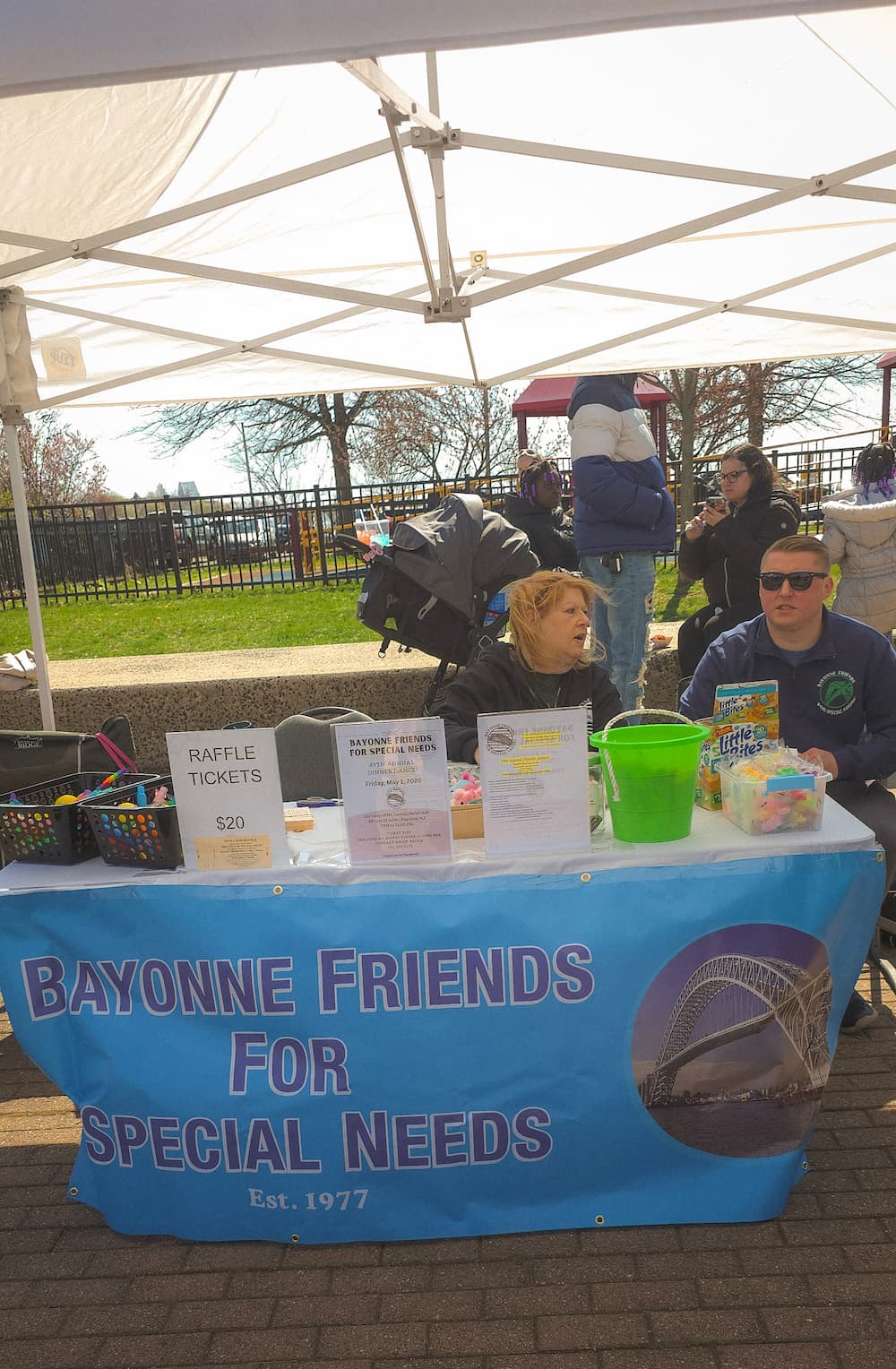 But the part I keep coming back to: the table run by BayonneFriends for Special Needs — established 1977. Raffle tickets, candy, three people who told us more about this city in five minutes than a year of Facebook groups. They're throwing their 49th Annual Dinner Dance on May 1st at Our Lady of Mt. Carmel. $100. DJ, buffet, open bar. If you're looking for a reason to get dressed up and feel good about Bayonne, there it is. Check them out.